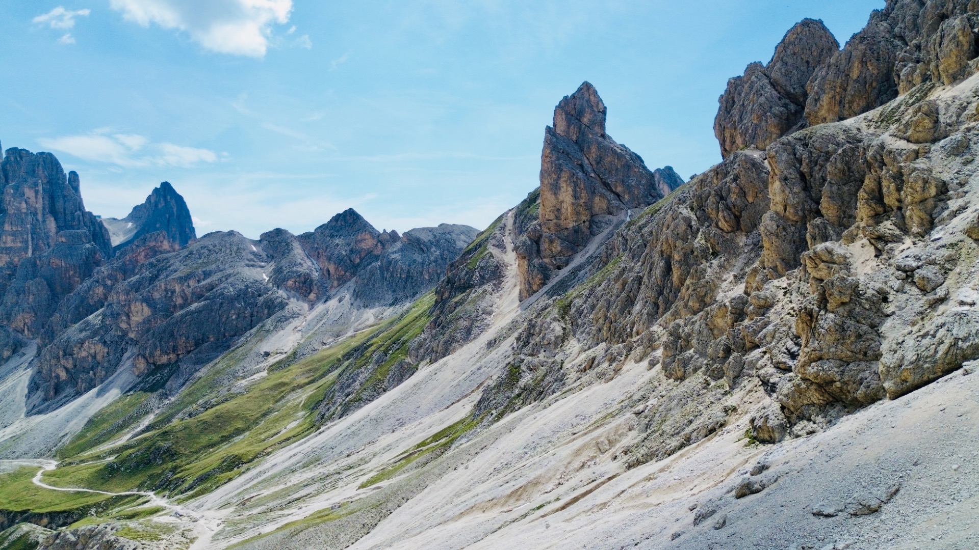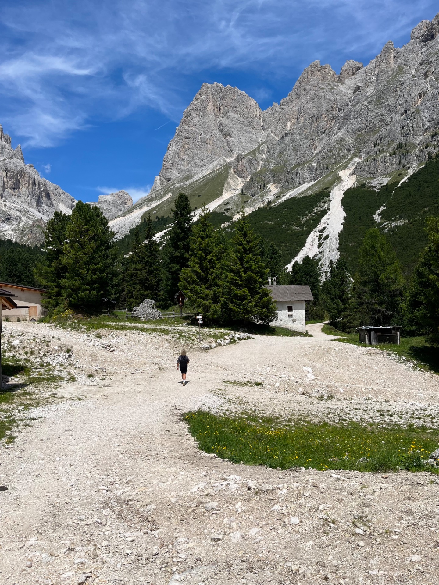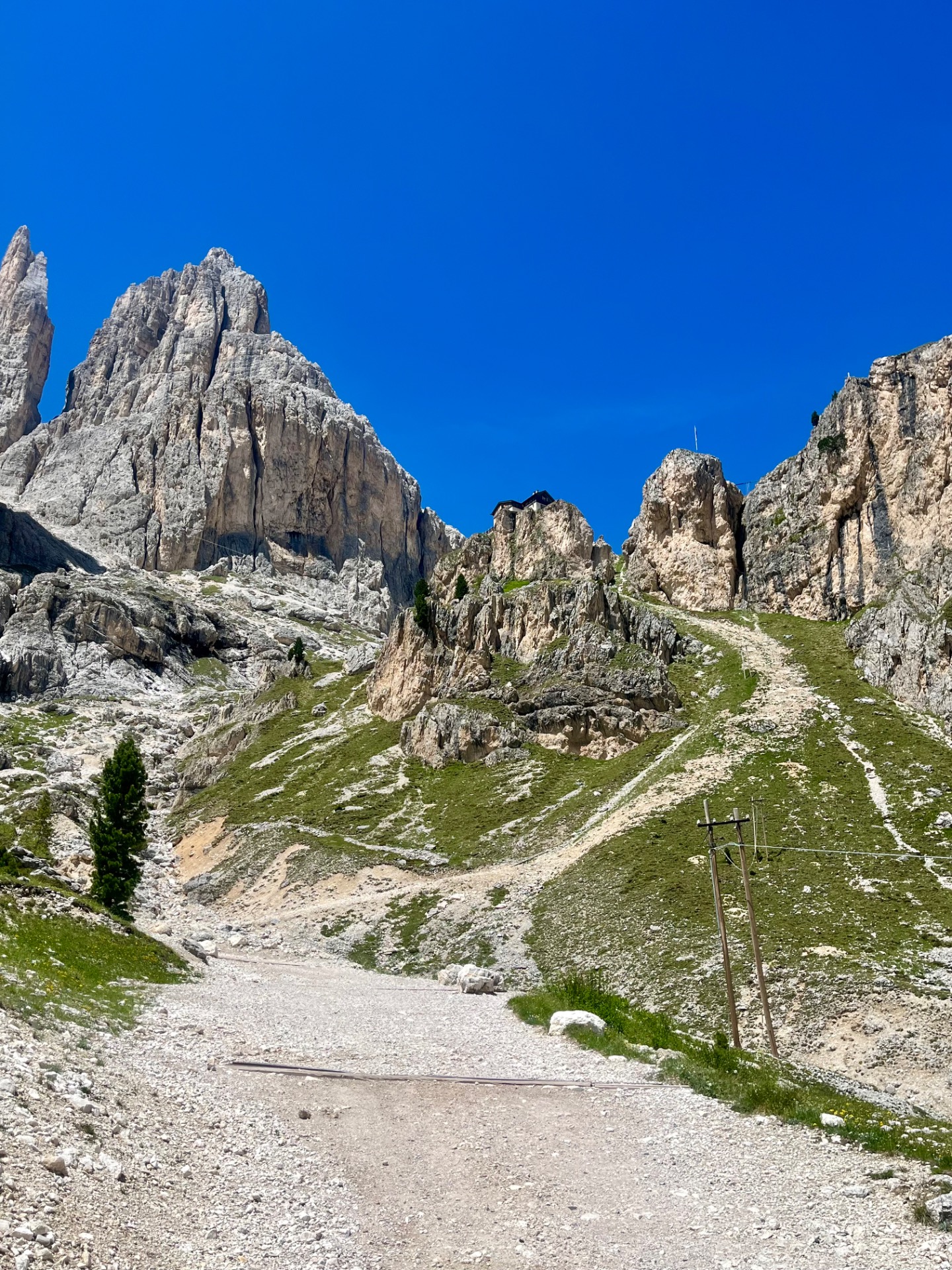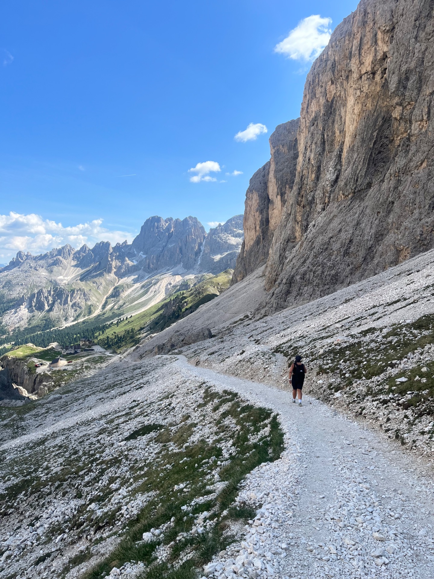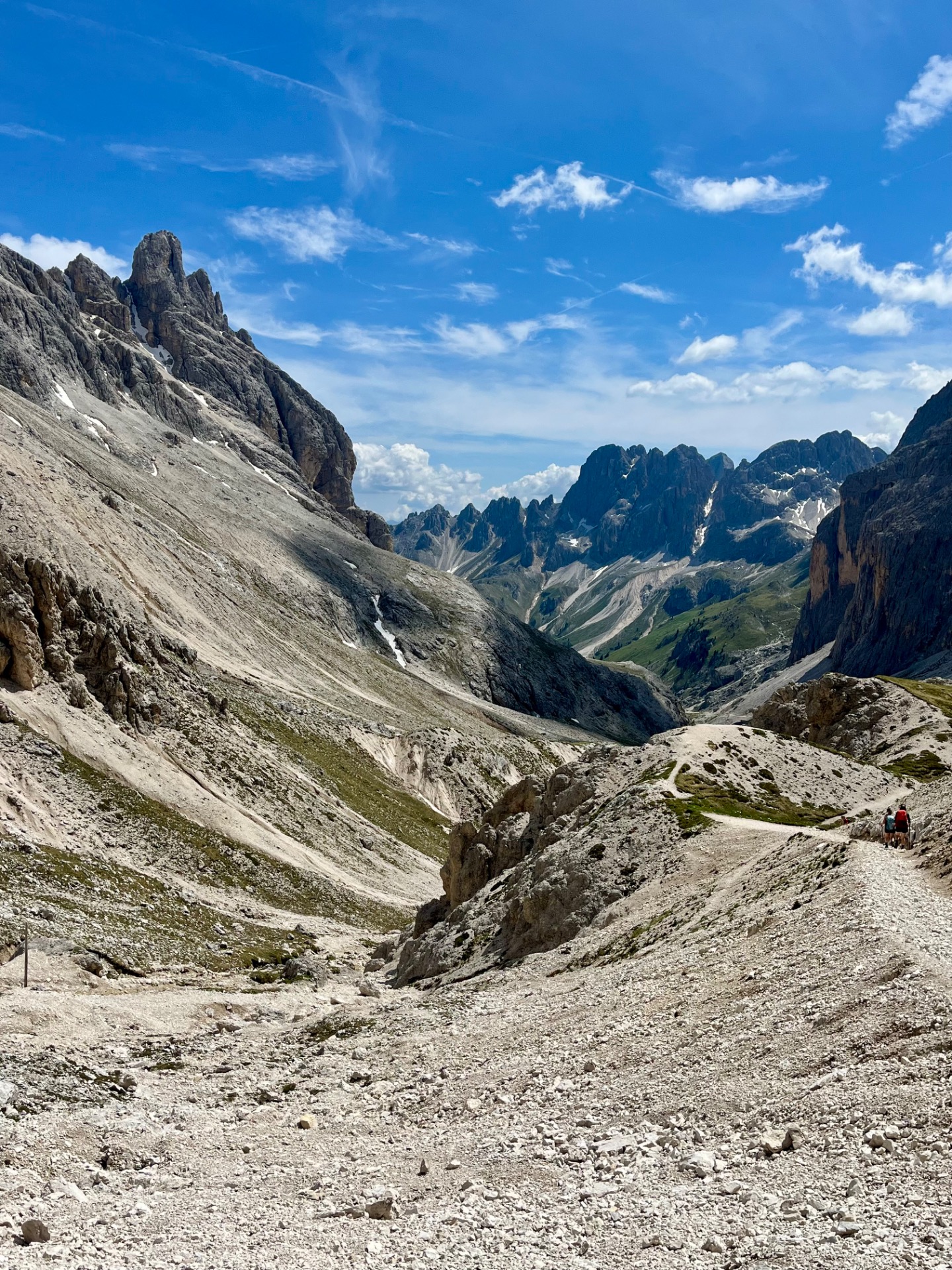 Z Gardeccie pokračujete po trase č. 546 směrem k Rifugio Vajolet. Tady už začnete pomalu nabírat výšku. Čekají vás asi 2 kilometry a necelých 300 výškových metrů, což zabere něco přes hodinu. Stezka se postupně zvedá a okolní krajina se začíná více otevírat, s typickými dolomitickými věžemi kolem vás a nádhernými výhledy do údolí. U Vajoletu se také napojují ferratové trasy (např. 542), takže tu bývá živěji.