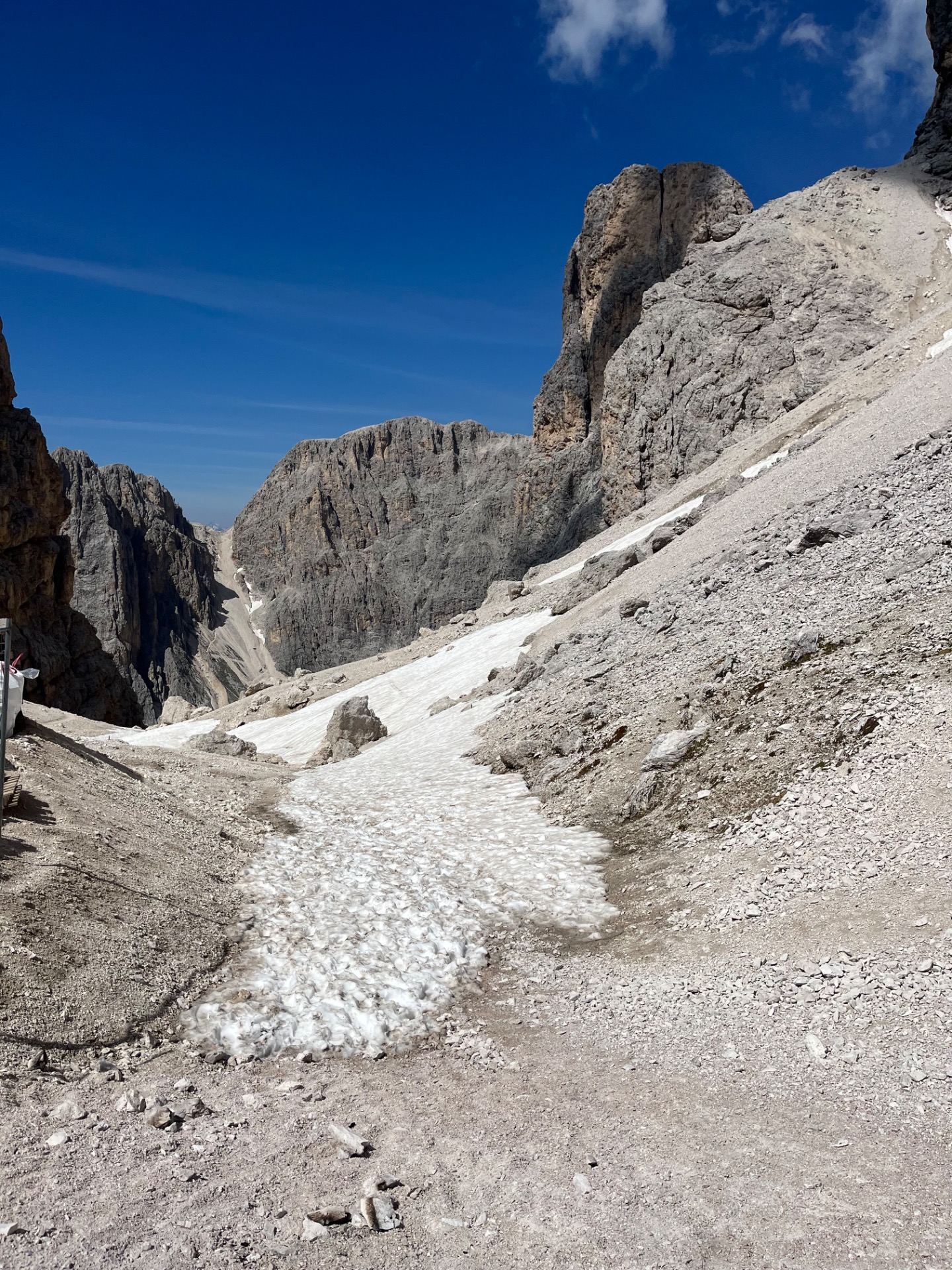 Od horní stanice se vydáte směrem k Rifugio Negritella, odkud se napojíte na trasu č. 540. Ta Vás pohodlně dovede k chatě Rifugio Gardeccia. Tento úsek je dlouhý zhruba 3 kilometry a vede příjemnou, spíše rovinatou krajinou, takže je ideální na zahřátí. Cesta ubíhá rychle a bez větší námahy. Zbytek cesty už je o něčem jiném.