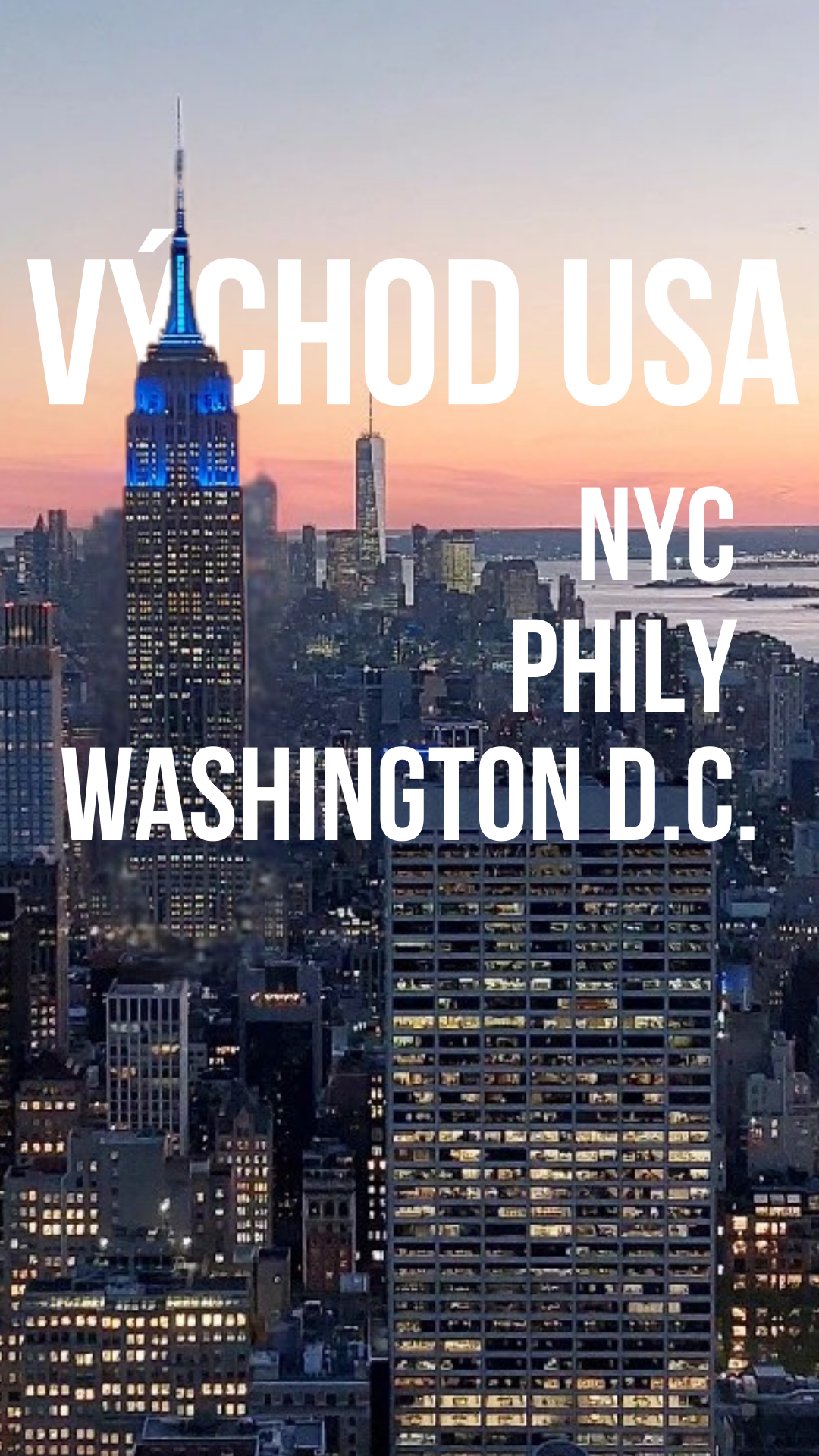 přesuny mezi NYC, Phily a Washingtonem D.C. řešeny veřejnou dopravou. A